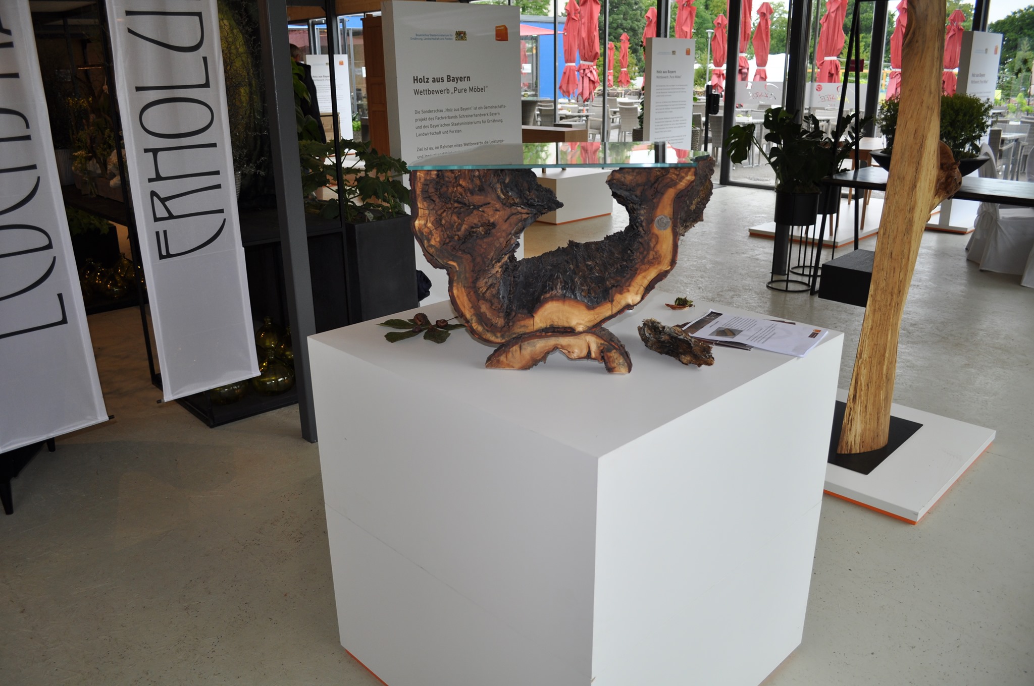 Wir hatten an einem Wettbewerb „Pure Möbel“ der Schreinerinnung teilgenommen. Wir durften unser Stück einem Couchtisch aus einem Kastanienbaum vor- und ausstellen. Die Ausstellung ist in Lindau und wurde von der Staatsministerin Frau Kaniber und von dem bayerischen Schreinerpräsident Herrn Konrad Steininger ausgezeichnet.