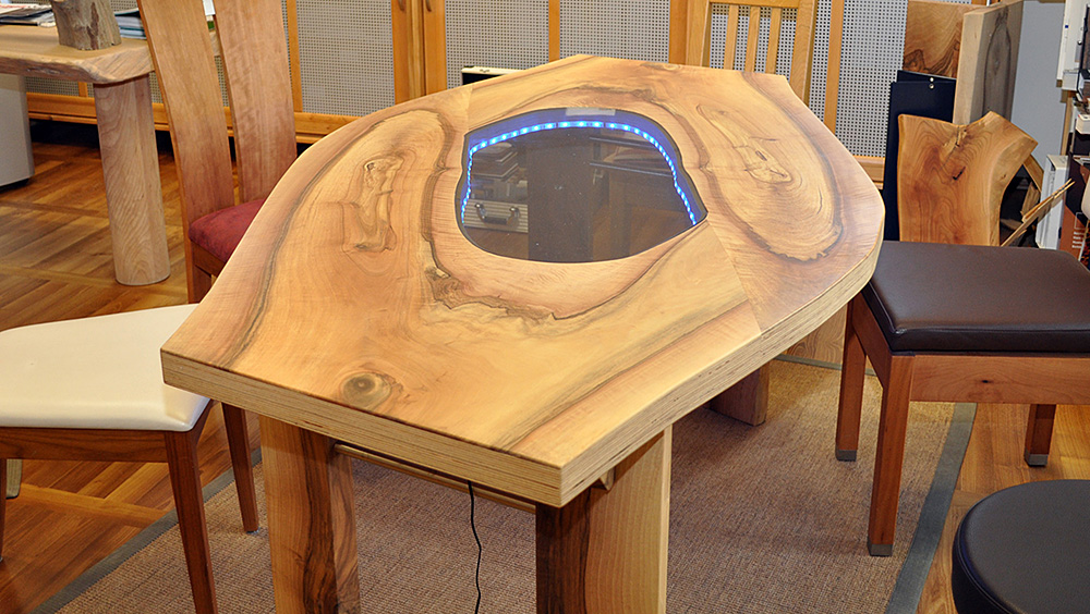 Nussbaumtisch Sägefurniertisch LED Beleuchtung Unikat Geölt
