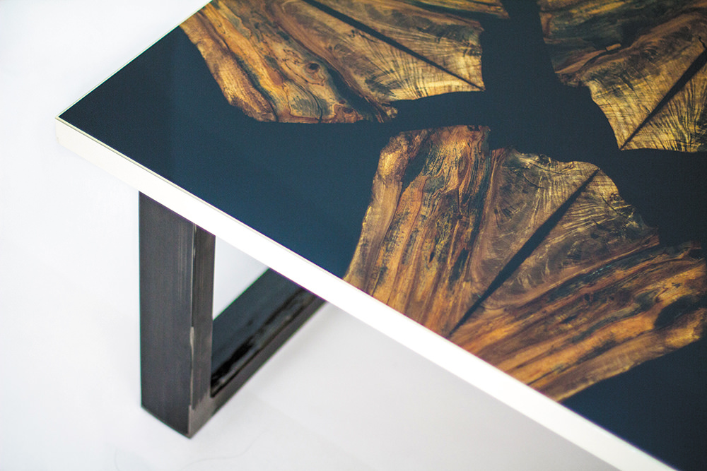 Amerikanischer Nussbaum mit schwarzen Epoxidharzfugen