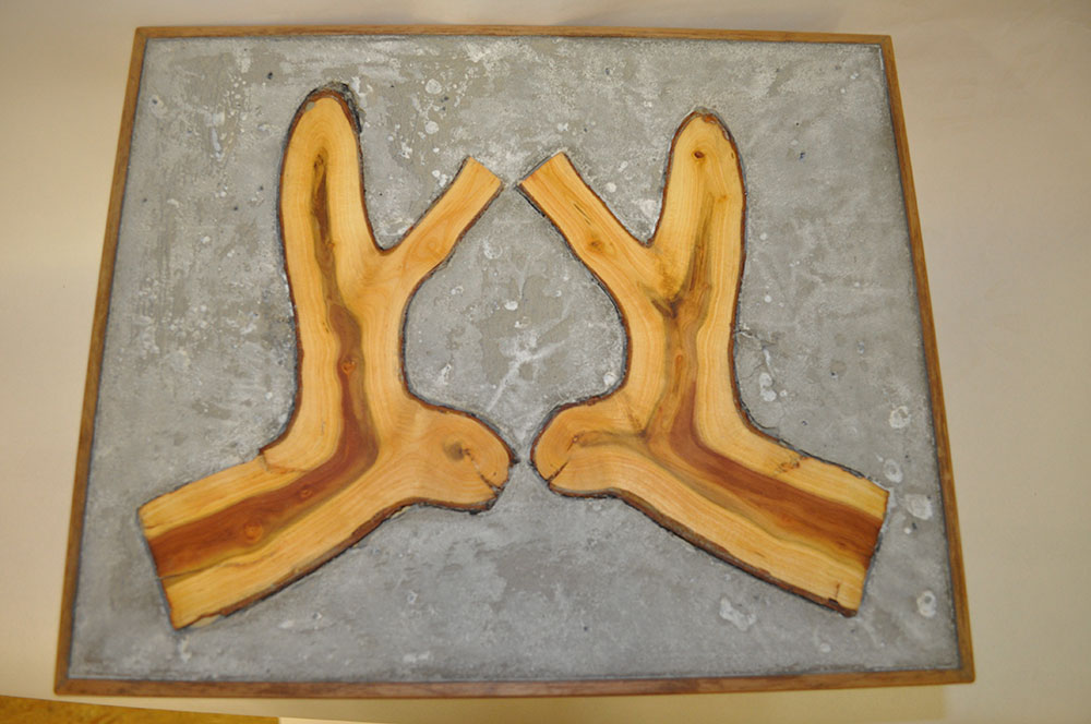 Bei dieser Technik entstehen Lehrräume. In diesem Fall haben wir sie mit Beton vergossen. Denkbar wäre auch eingefärbtes Harz. Diese Technik lässt sich auch bestens als Bild anwenden.